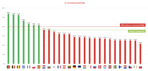 Les derniers résultats du « Freshfel Europe consumption monitor » montrent que la consommation moyenne de produits frais s’élève à 364 g/habitant/jour en moyenne pour 2021. Des chiffres inquiétants bien en deçà des recommandations de l’OMS (400 g /jour). Et ils sont tirés vers le bas par les jeunes générations peu attirés par ces produits.