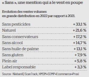 La qualité nutritionnelle s’affiche 21/06/2023 Alix de Reynal La santé est devenue une préoccupation majeure pour les Français. Les industriels l’ont bien compris, ils nettoient autant que faire se peut, leurs recettes. Sans sucres ajoutés, sans additifs, sans conservateurs, sans allergènes, sans résidus de pesticides, allégés en sel, mais aussi riche en fibres ou source de protéines… Les consommateurs sont de plus en plus attentifs à leur assiette. Le Nutri-Score les aide à mieux acheter : 50 % sont attentifs à la note des produits qu’ils achètent, 52 % choisissent le produit le mieux noté du rayon. D’où l’intérêt pour les industriels à améliorer nutritionnellement le contenu des produits qu’ils proposent. https://www.circuits-bio.com/chiffres-et-marches/qualite-nutritionnelle-un-engagement-a-mieux-communiquer